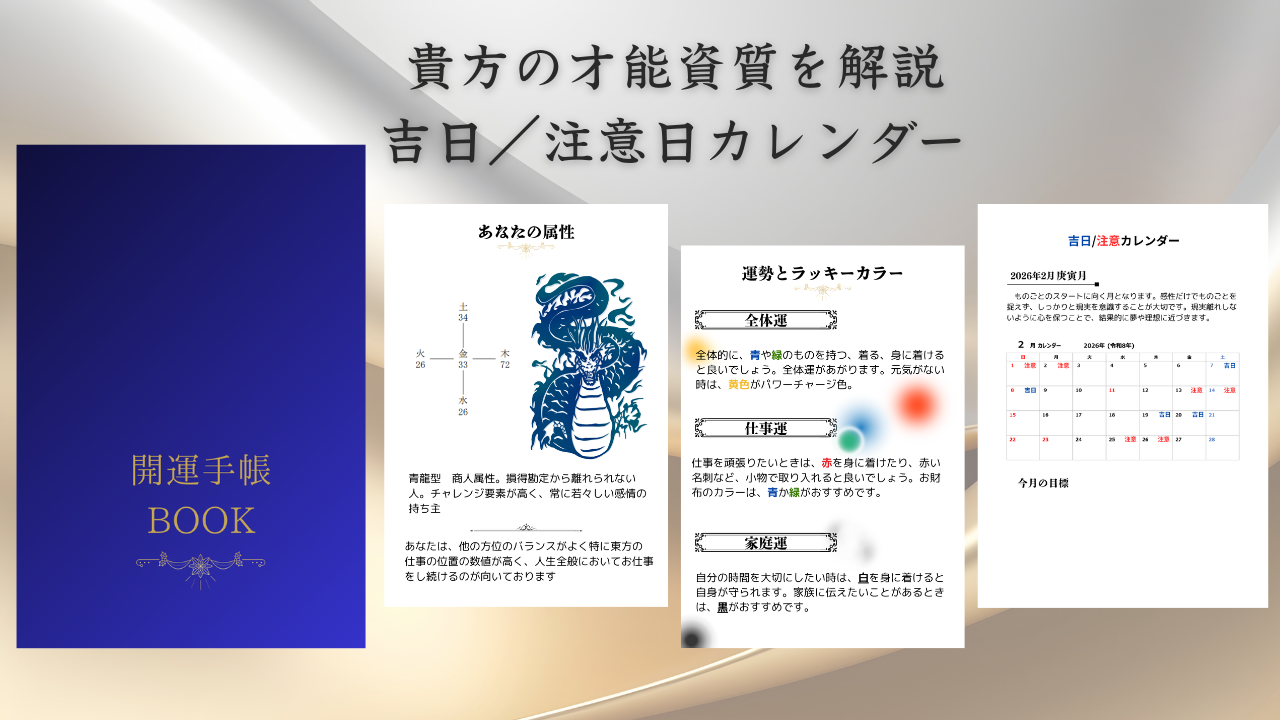 お一人お一人の才能や特性を算命学・陰陽五行を基に分析した開運手帳BOOK