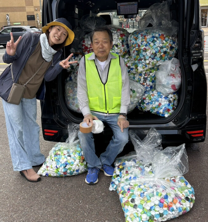 現在、福岡市西区の愛宕浜校区と姪浜校区の2ヶ所の自治体様と協力頂き、ペットボトルキャップ2㌧を1000人のポリオワクチン寄付チャレンジを行っております!